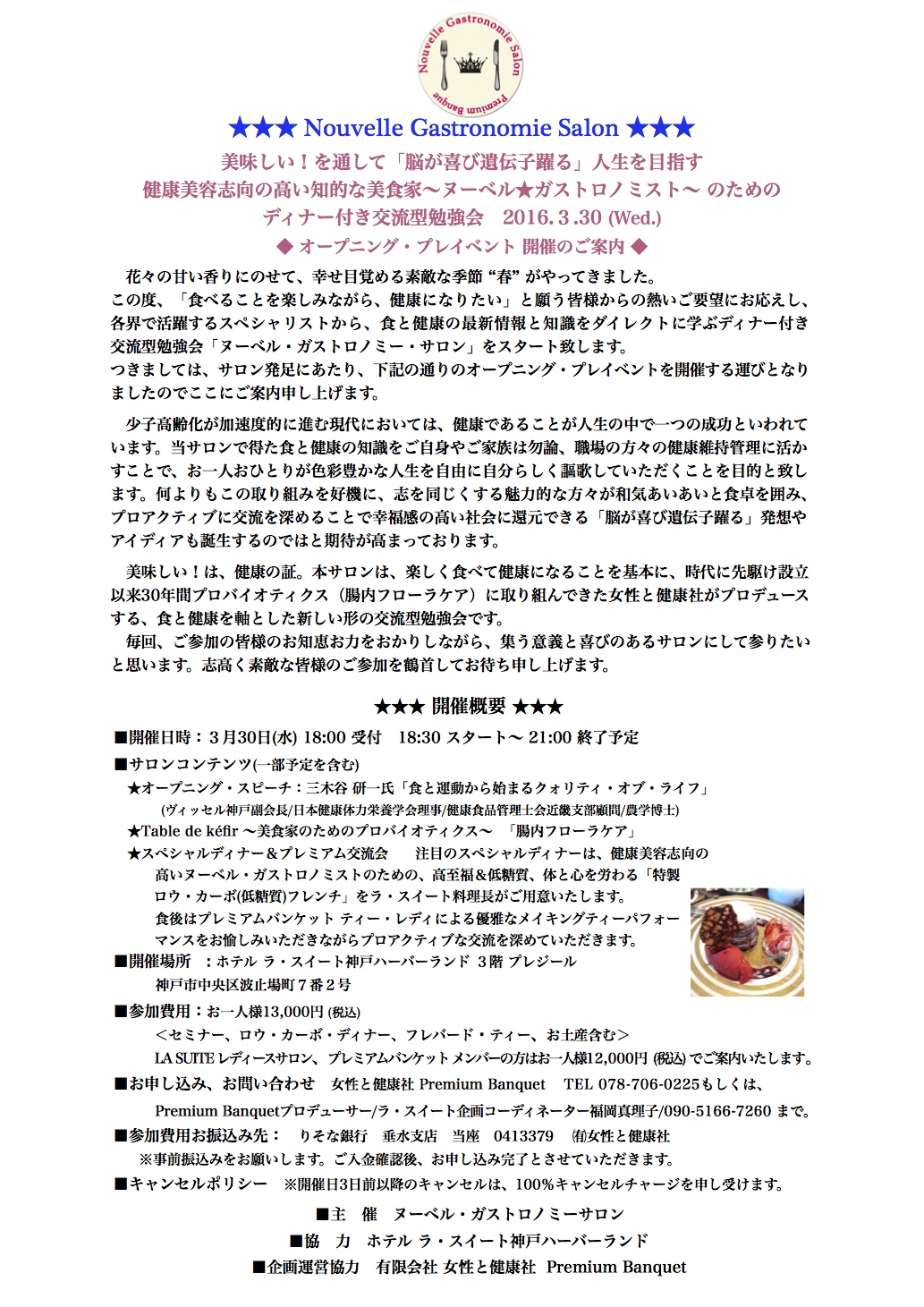 ★Nouvelle Gastronomie Salon 開催のご案内★ 2016.3.30 (Wed.)