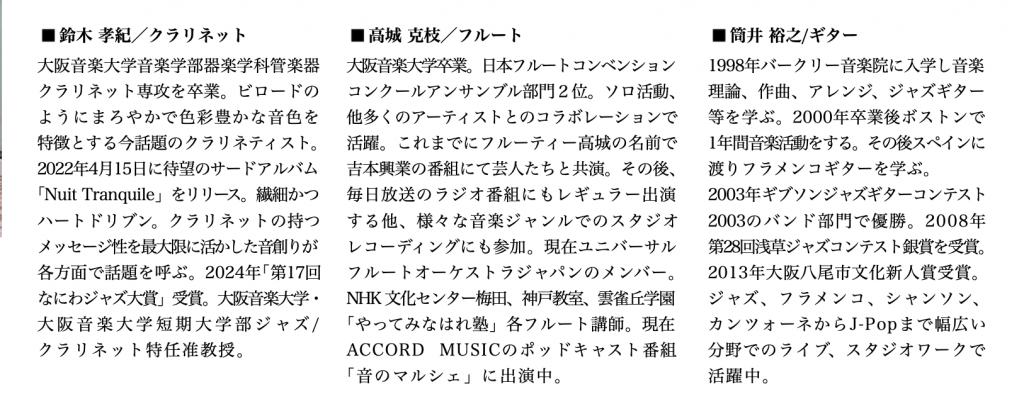 ご好評をいただいておりましたフルート(高城克枝)、クラリネット(鈴木孝紀)、